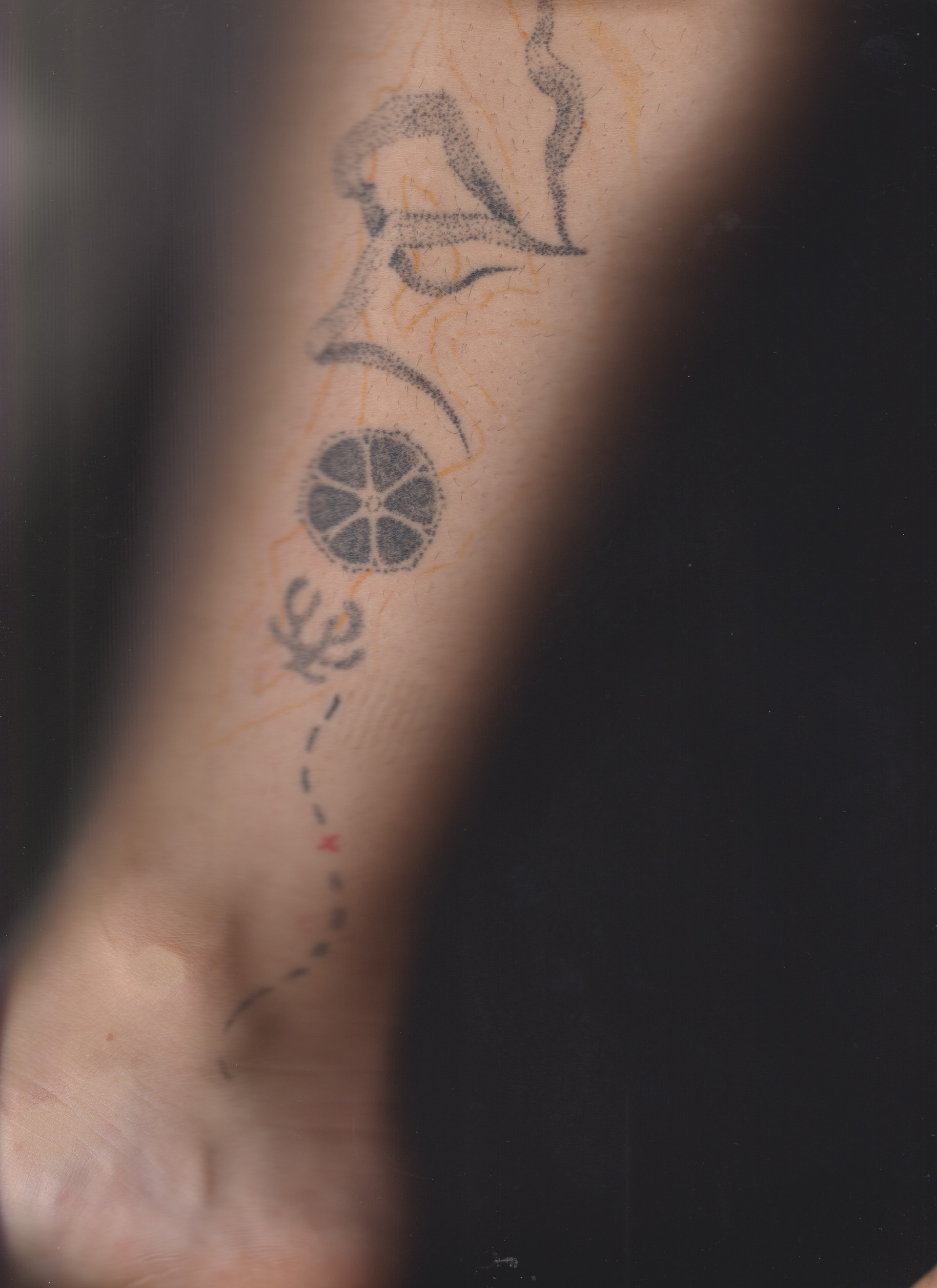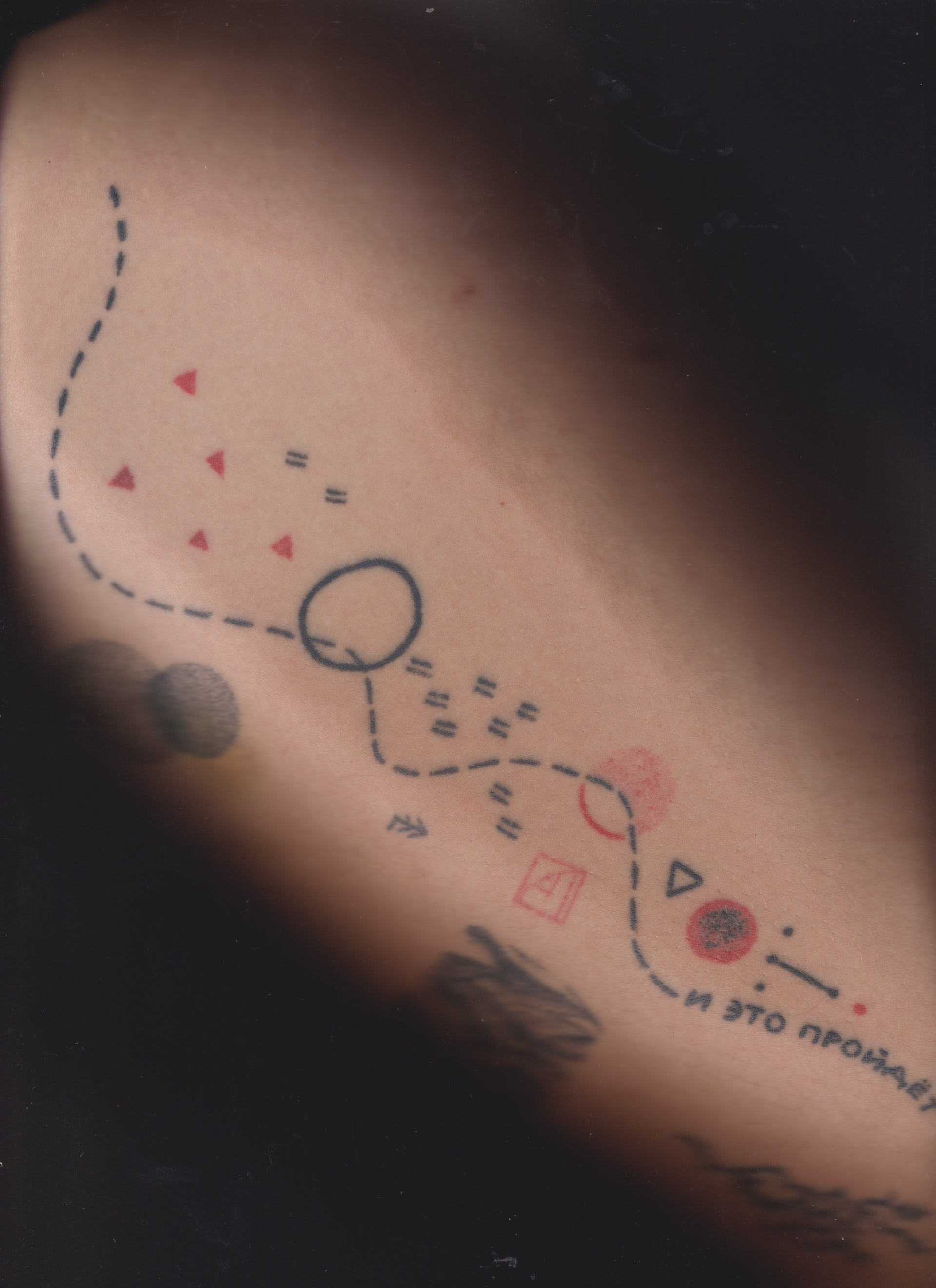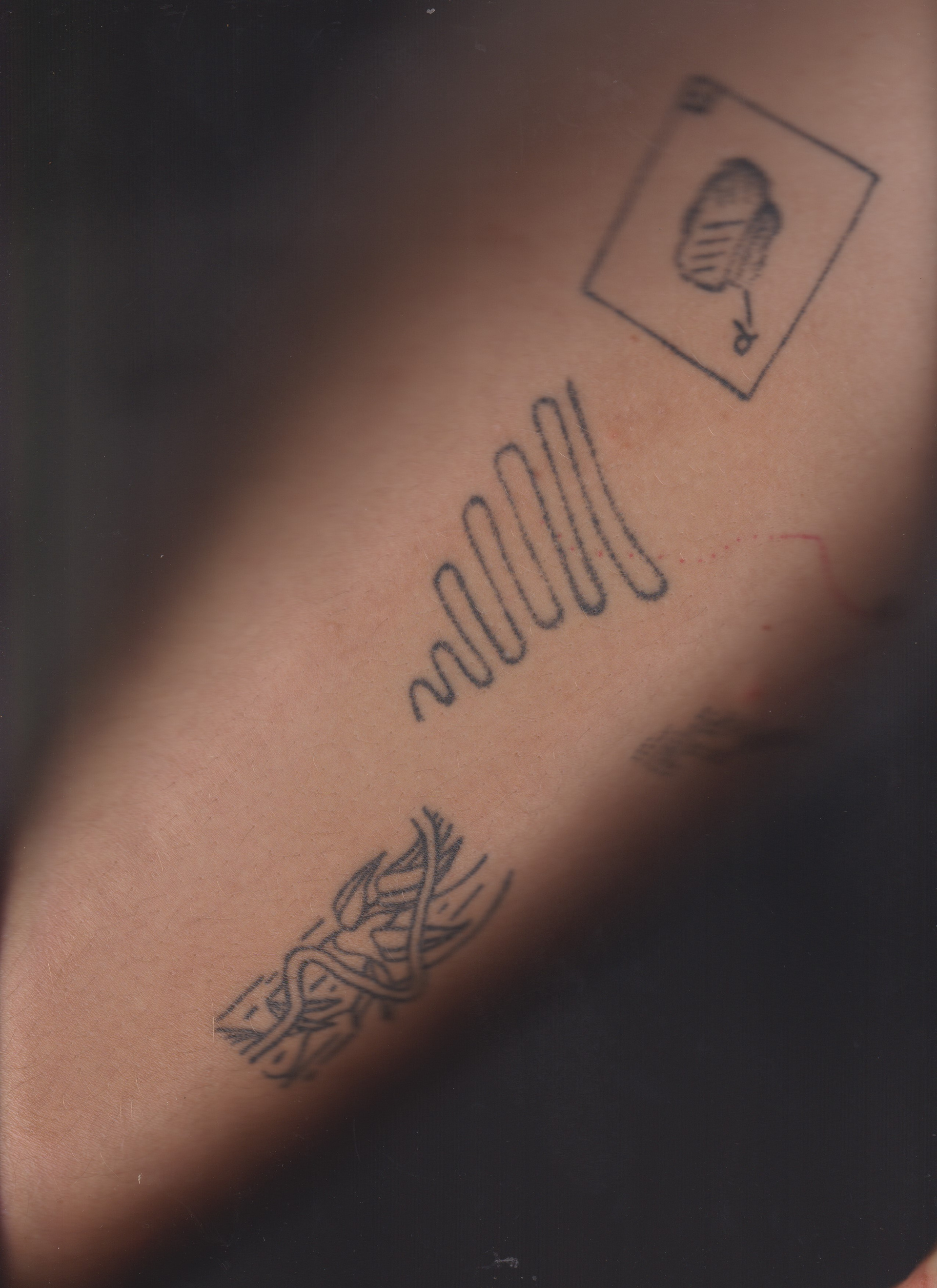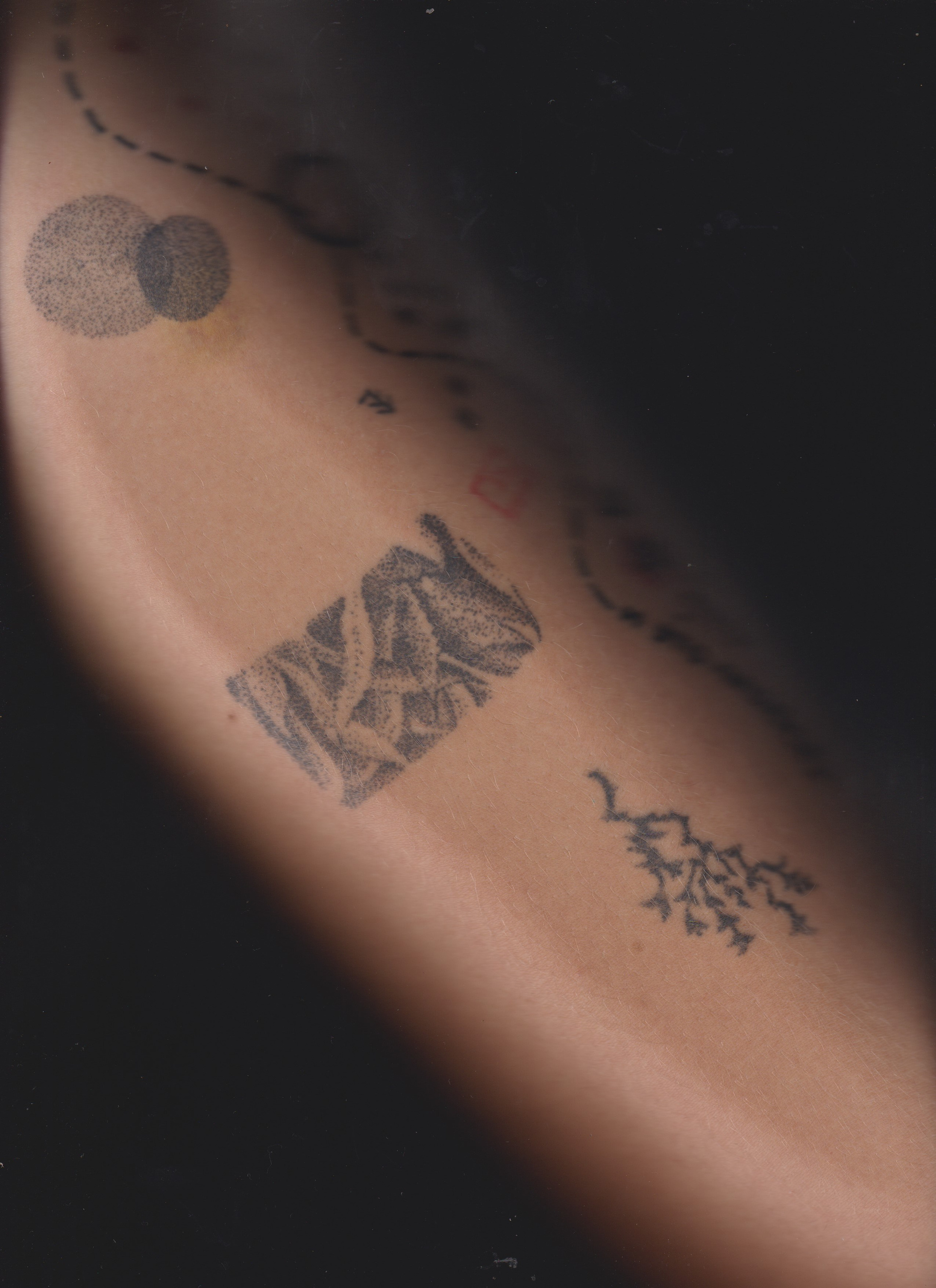geological layers of time; personal history as a layers of sediments; body as a fossil, as an exhibit, as a map; tattoo as a archeological/geological data; a detachment of scientific methodology; detachment to handle the political reality